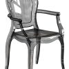 Krzesło z podłokietnikami z serii Boutique to nowoczesny dodatek do aranżacji. Model łączy w sobie nowatorskie wykonanie z klasycznym i eleganckim designem. Forma w postaci poliwęglanu nadaje możliwość użytkowania nie tylko wewnątrz, ale również na zewnątrz. Dodatkowo materiał wykonania zapewnia lekkość, wytrzymałość oraz łatwe i wygodne czyszczenie powierzchni. Design produktu był inspirowany klasycznymi meblami w stylu francuskim.