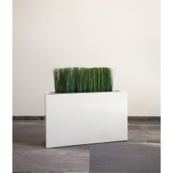 Neutralna barwa donicy stanowi rewelacyjną bazę do aranżowania przestrzeni domowej, biurowej i tarasowej. Połączenie dwóch donic ustawionych za sofą stworzy parawan, który może oddzielać strefę wypoczynkową salonu od jadalnej. Ustawiona modułowo na tarasie z dodatkiem wysokich traw, które umieścimy we wchodzącym w skład donicy wkładzie, stworzy zieloną przestrzeń – miejsce relaksu i wypoczynku.