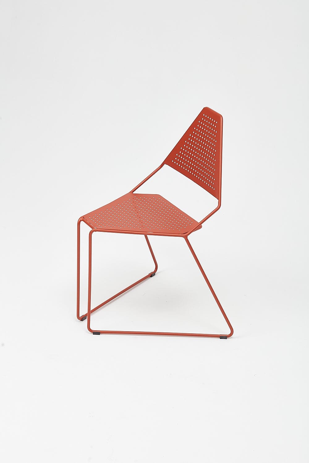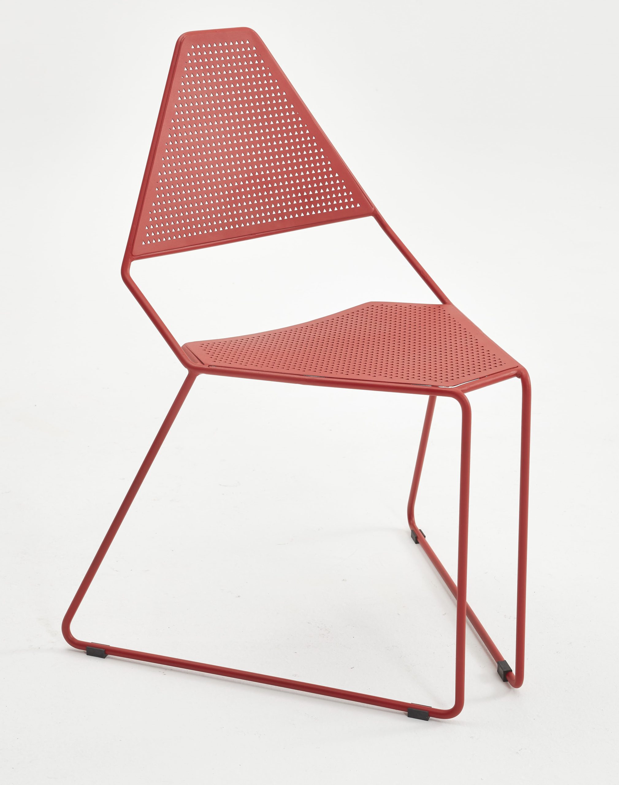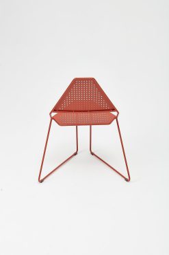 Krzesło delta to nowoczesny design do wnętrz. Ten wykonany z metalu model zachwyca swoją geometryczną prostotą. Trapezoidalne oparcie zapewnia pełny komfort siedzenia, a niestandardowy kształt ułożenia płóz gwarantuje całkowitą stabilność stelaża.